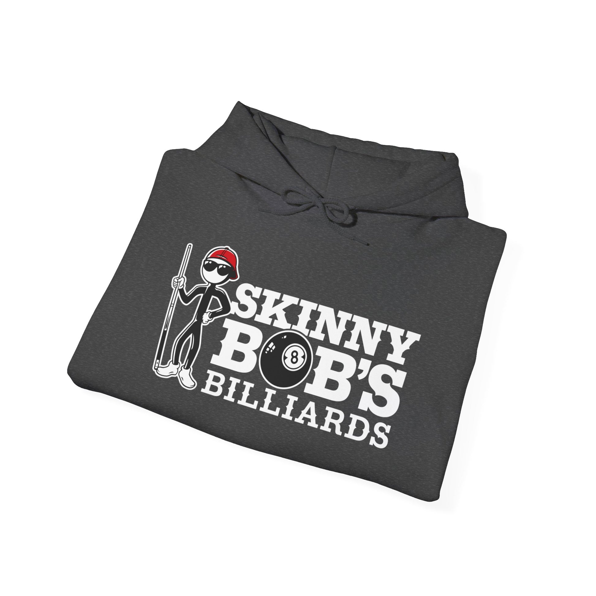 There’s an easy, familiar comfort to this hoodie—like sliding into the pool hall’s worn chairs after a long night of league. It carries Skinny Bob’s pride: low-lit evenings, the clack of balls, and friends lingering over one more match. Thick enough to hold warmth on chilly nights under the neon, but soft enough to wear all day. The pouch pocket keeps your hands warm between shots (on and off the table!). The double-lined hood and color-matched drawcord feel solid when you pull it up against a draft. Subtle stitching and optional embroidery let local regulars wear the name without shouting it — a quiet badge you’ll recognize at the door. This is what you reach for when it’s time to stay late at the poolhall, meet the crew, or head home with chalk on your fingers.